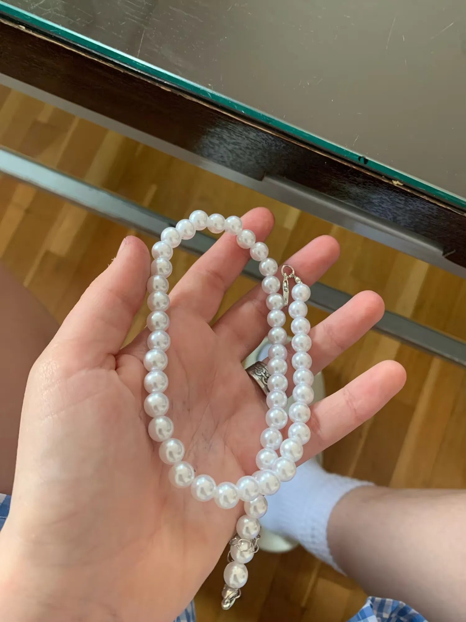 First time wearing pearls and I must say, it adds a distinct flair to even my plain outfits. Love the flexibility.